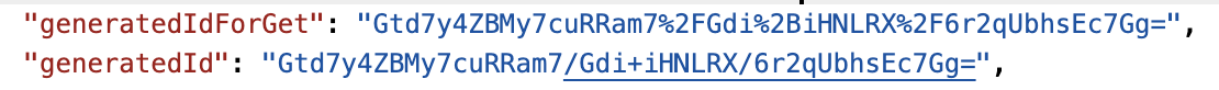 그러다보니 임의의 String 값이 id로 생성되는데 여기에 +나 /같이 URL 예약문자들이 끼워져 들어가면서 GET API를 호출할 때 문제가 발생한 것이다.