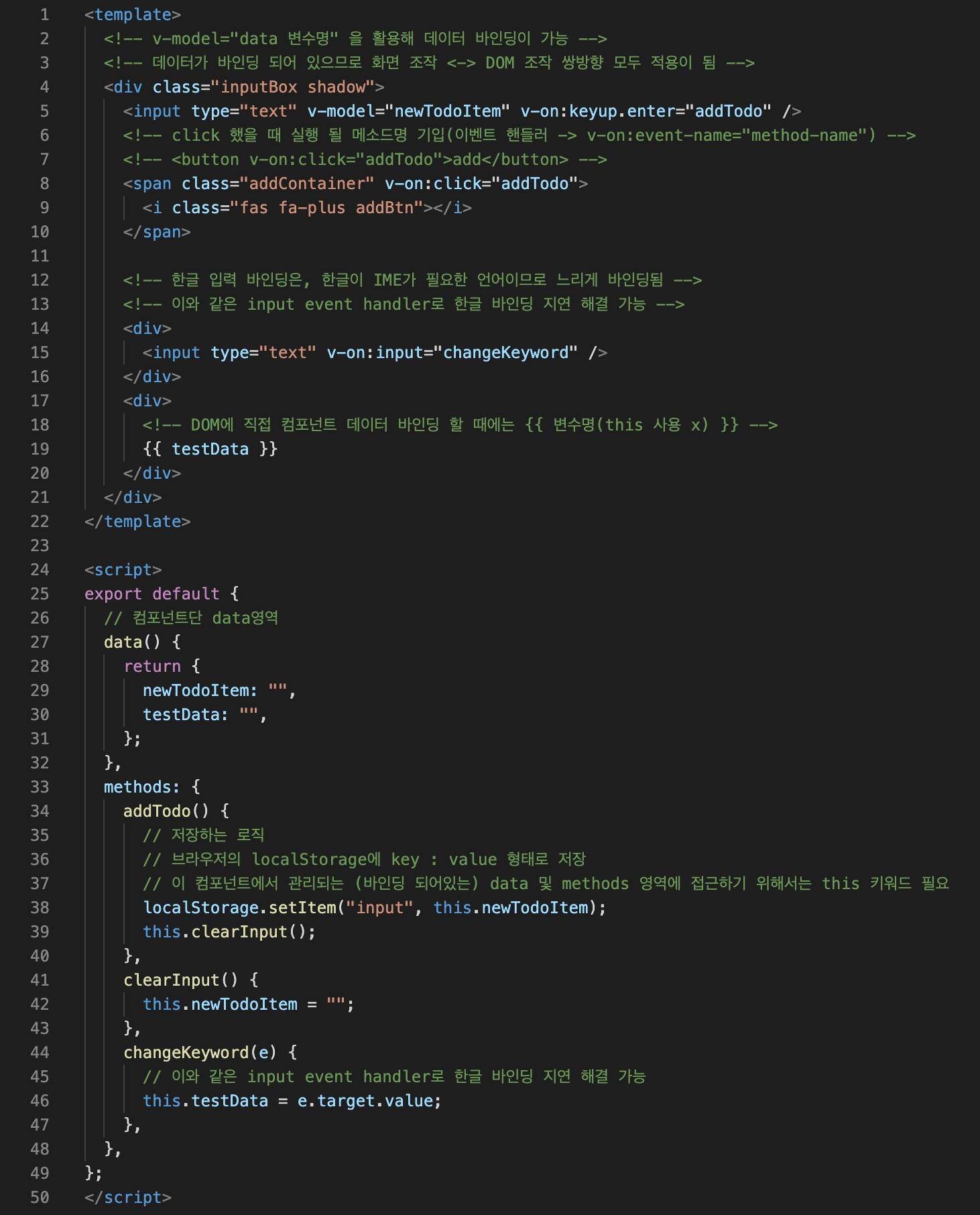 컴포넌트 내 데이터 바인딩 관련 예제 코드
